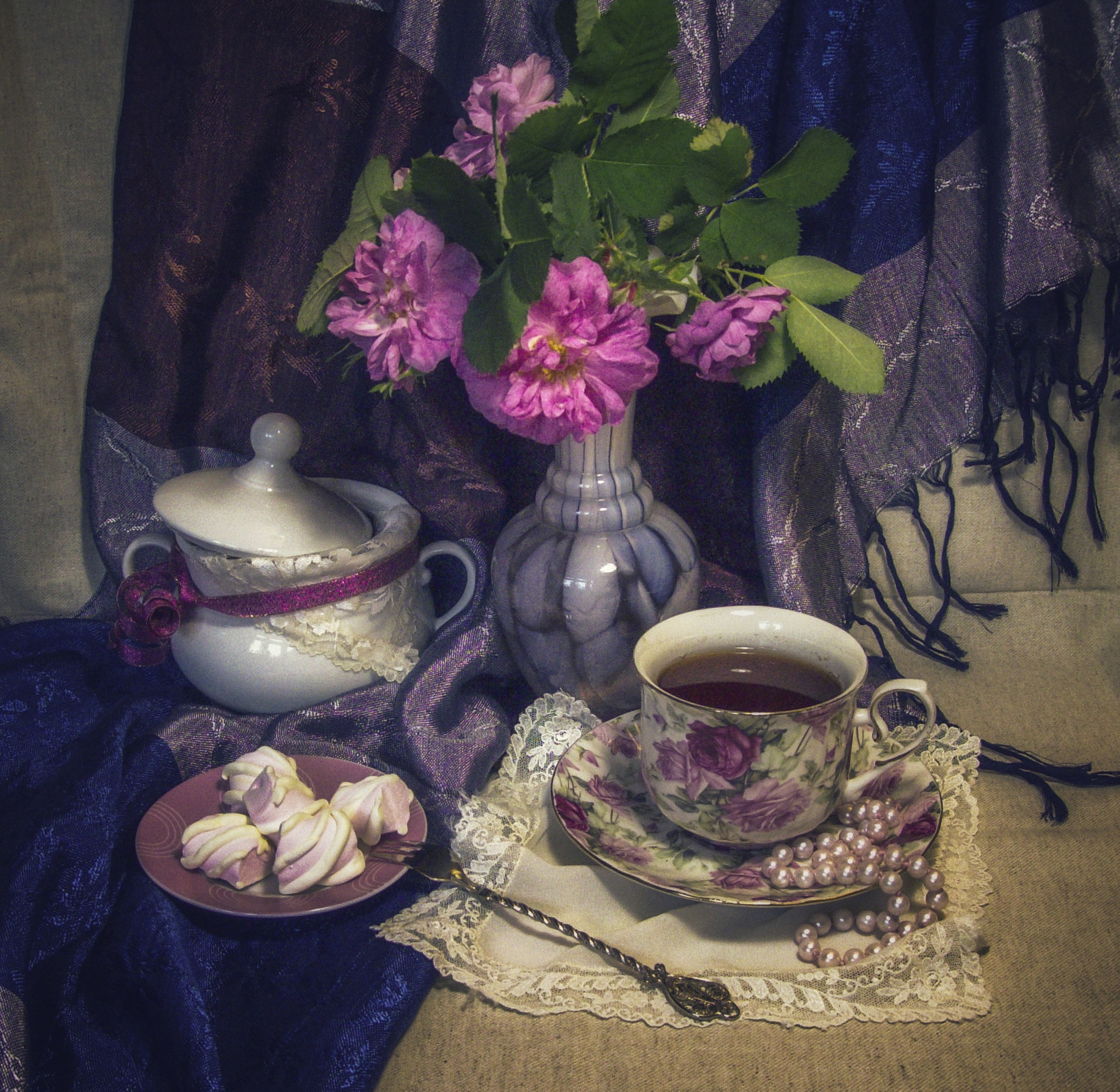 Пользуюсь моментом, пока она живет дома. И тогда еще цветы не завяли, подаренные на юбилей.